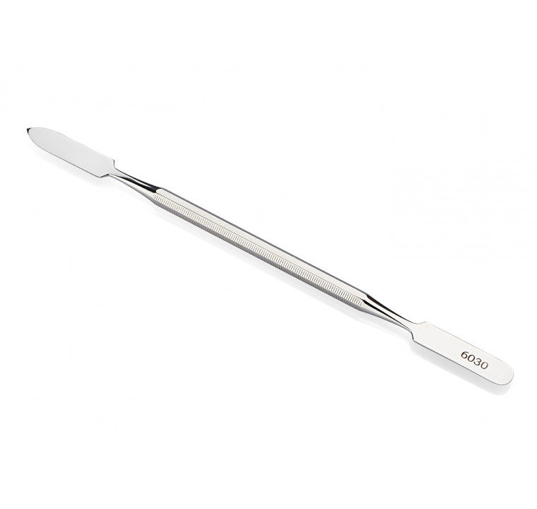 Cette spatule pour la conception d'orthonyxie et d'onychoplastie possède deux extrémités en inox.