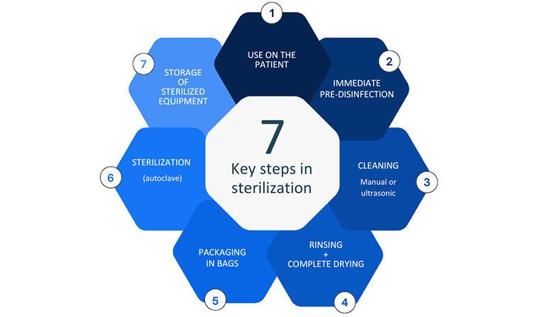 A good sterilization protocol follows a series of clearly defined steps, from pre-disinfection to final sterilization: