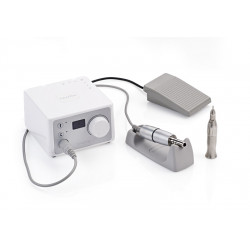 This tabletop micromotor accompanied by its handpiece is ideal for treatments in the practice or at home. It has the following technical features: