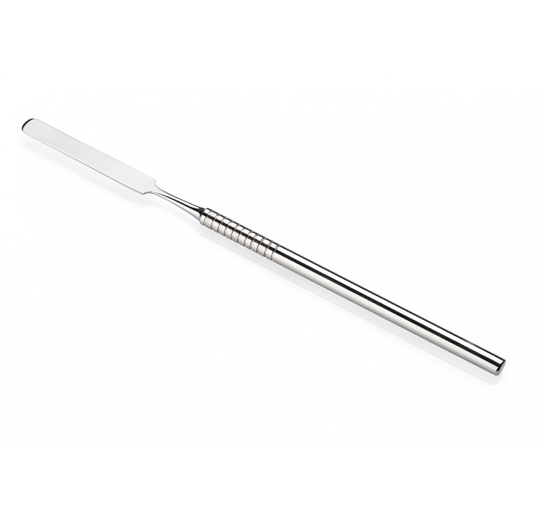 This stainless steel single spatula is used for the creation of orthonyxia and onychoplasty devices.