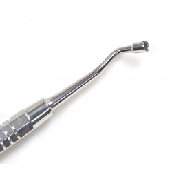 This sterilisable instrument has two ends. The first end has a spatula tip for drawing the resin from the syringe and applying it to the nail. The other end has a tip with an avoidance zone that allows you to hold a pre-made stud firmly in place during the light-curing process.
