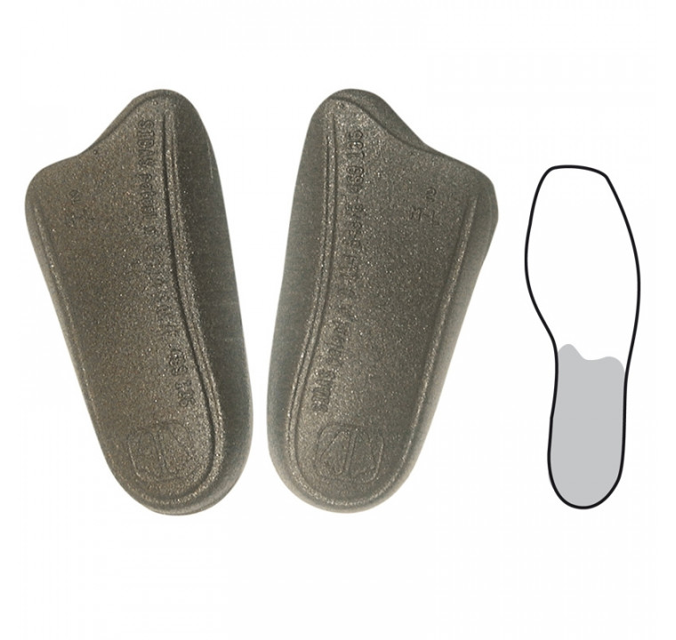 This rigid, pre-glued, and preformed heel stabiliser is designed for heel wedging.