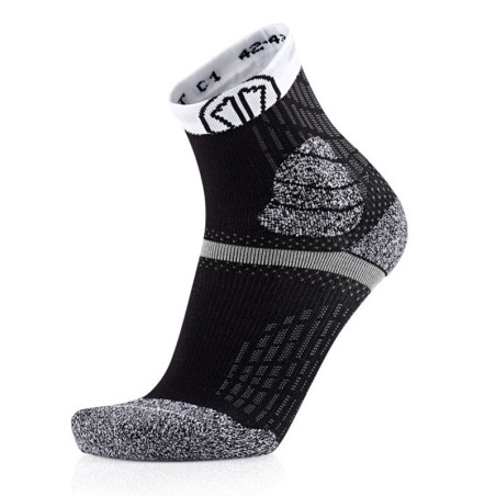 Ces chaussettes trail protect de couleur noir et gris possèdent les caractéristiques techniques suivantes :