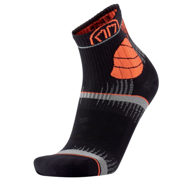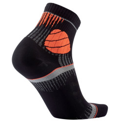 TRAIL ULTRA NOIR ORANGE sont des chaussettes techniques, légères et respirantes conçues pour soutenir l'évolution des pieds sur de longues distances.