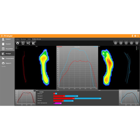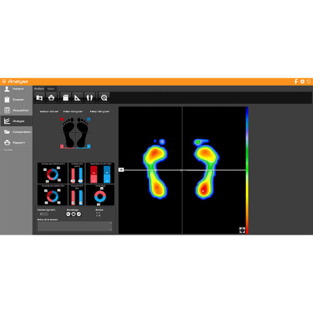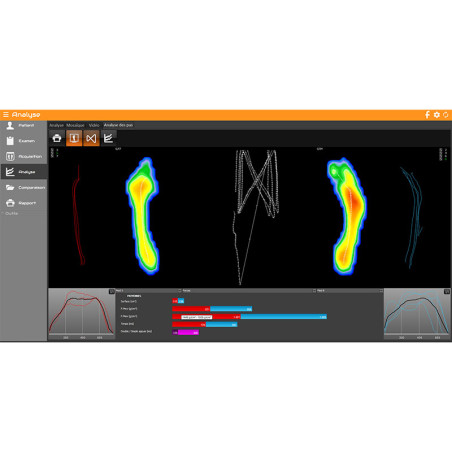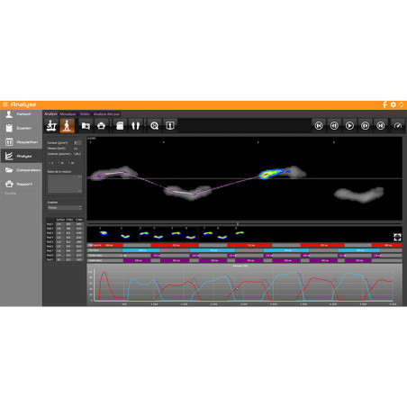 Cet outil d'analyse est la combinaison d'un tapis de course et d'une plateforme de pressions plantaires pouvant être utilisé ensemble ou de manière dissociée. Il permet une acquisition statique, dynamique au sol, posturologique et dynamique sur tapis. La grande plateforme de pression intégrée garantie la fiabilité et la précision de l'analyse du déroulé du pas.