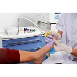 Cette lampe à photopolymériser fabriquée en France permet de fixer rapidement et durablement les appareillages d'orthonyxie et onychoplastie.