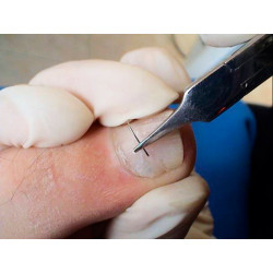 Cette pince en acier inoxydable permet de plier le fil sur ses deux extrémités afin de créer des crochets latéraux qui vont venir fixer l'orthonyxie à l'ongle.